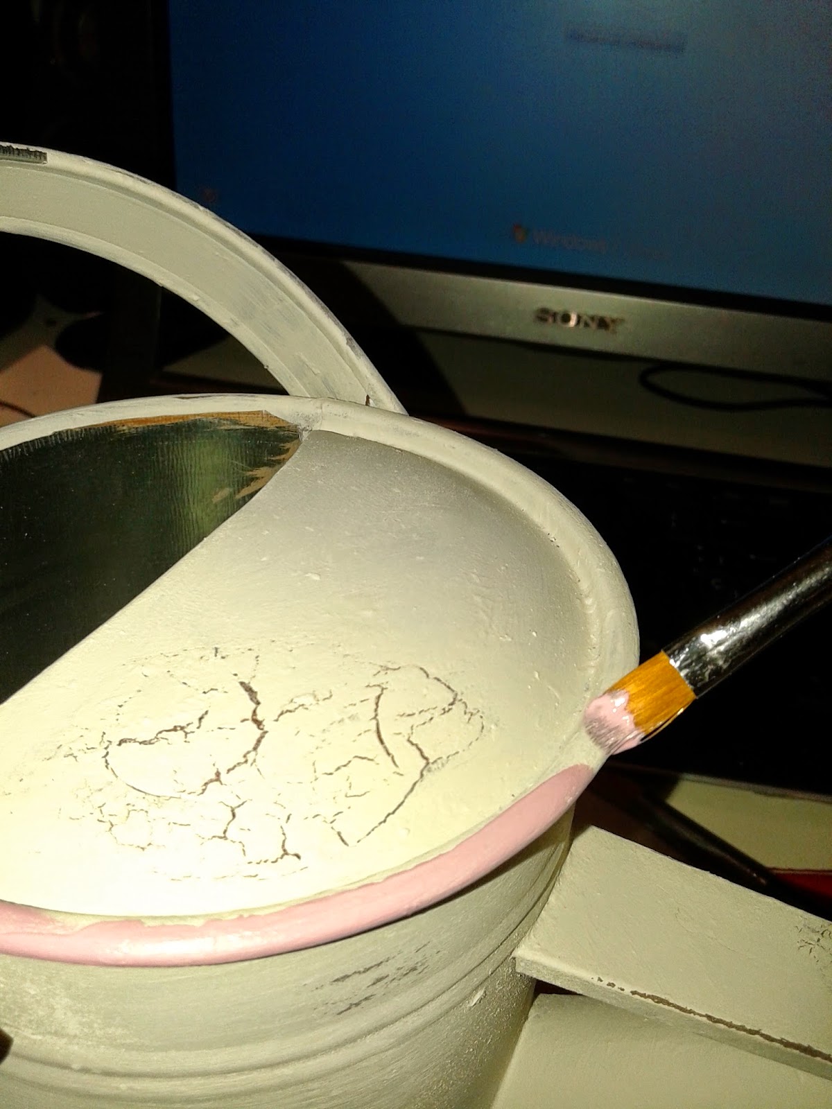 A los bordes de la regadera les he pintado con un rosa a juego con el dibujo de la servilleta